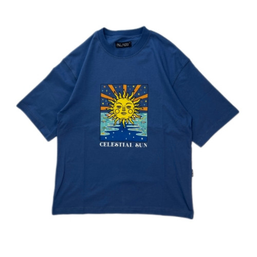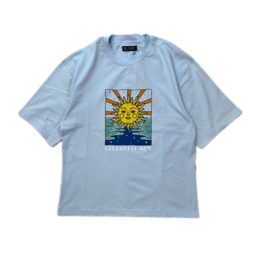 تیشرت باکسی پنبه ای طرح خورشید رنگ آبی آسمانی