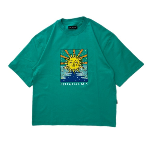 تیشرت باکسی پنبه ای طرح خورشید رنگ سبز