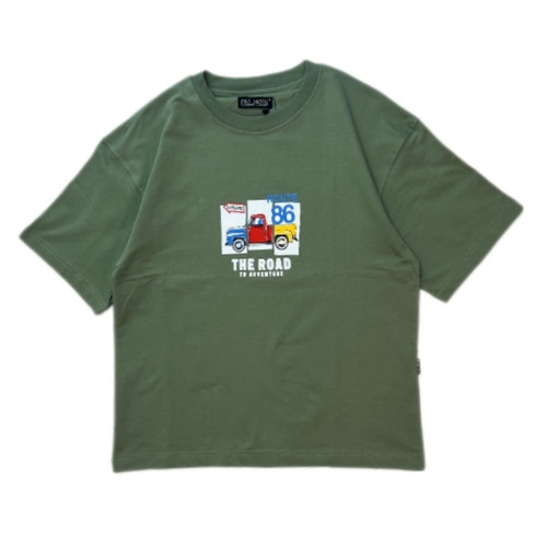 تیشرت دورس دو نخ چاپدار باکسی طرح ماشین رنگ سبز