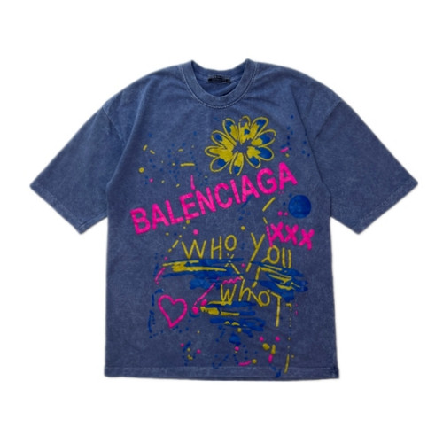 تیشرت سنگشور چاپدار بالنسیاگا رنگ آبی