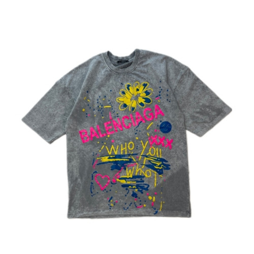 تیشرت سنگشور چاپدار بالنسیاگا رنگ طوسی روشن