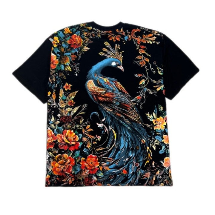 تیشرت مردانه چاپی طرح طاووس رنگ مشکیناموجود