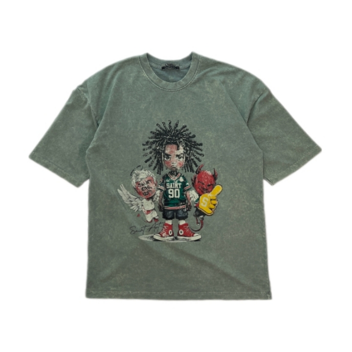 تیشرت دورس دو نخ چاپدار باکسی طرح ماشین رنگ سبز