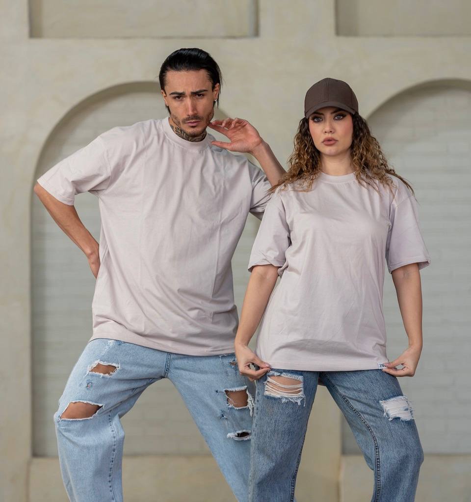 تیشرت دورس دو نخ چاپدار باکسی طرح ماشین رنگ نسکافه ای قهوه ای