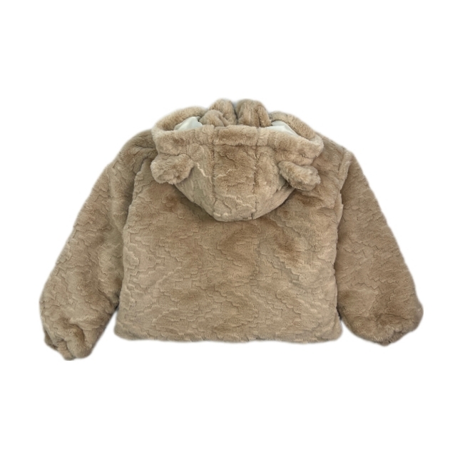 کاپشن زنانه پشمی کلاه گوش دار رنگ نسکافه ای